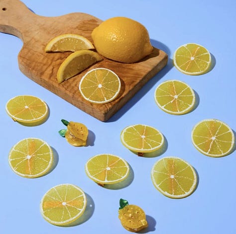 I also attend because while the Javits is cavernous, the food options are incredibly limited, and the bathrooms are old, I like their management and marketing staff, and I find it a good place for unexpected surprises. Like cherries and lemons and flour sacks’ return to clothing. Discover my best loved finds below.