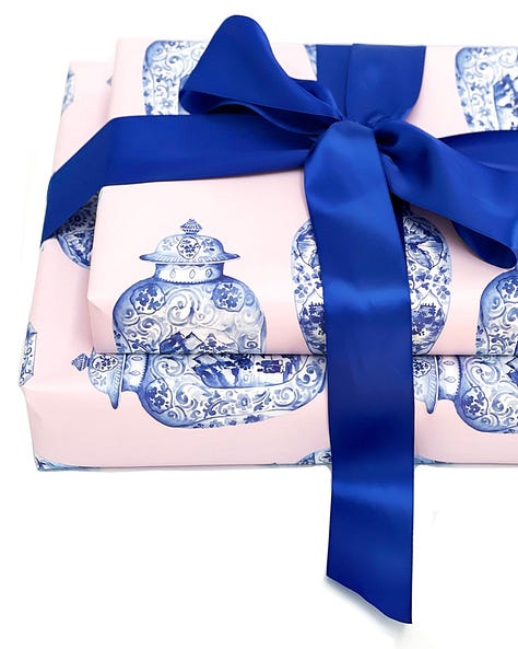 Now you must be asking, was there anything without fruit? Surprise! There was, but it was subtle; my beloved Chinoiserie-inspired pieces. Whether the hair clips from WE ARE CHIMMI, the clutch from Tiana Designs (I KNOW, but she legit has so many good things), or Josil Paperie’s Ginger Jar Gift Wrap, blue and white gorgeousness is here to stay.